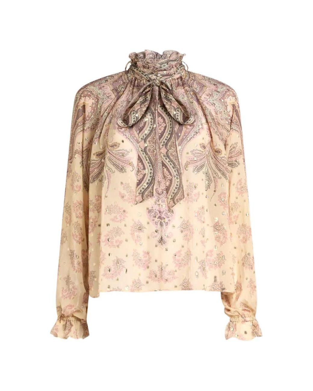 Beige stampa paisley con stampa decorazione con paillettes dettaglio con ruches dettaglio con nodo Size: 40. Gender: Female. Material:seta/fibra metallica. Colore: neutro