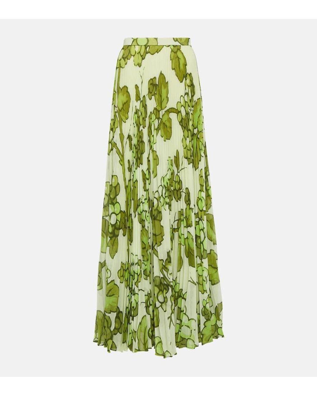 Gonna Lunga Plisse A Vita Alta da donna di colore verde
