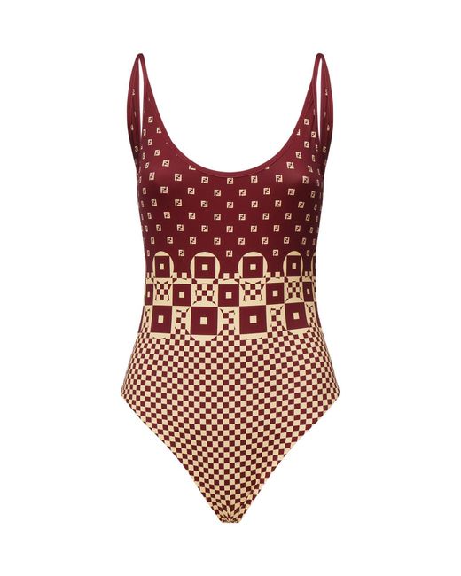 Costume Intero Con Stampa Micro Patchwork da donna di colore rosso