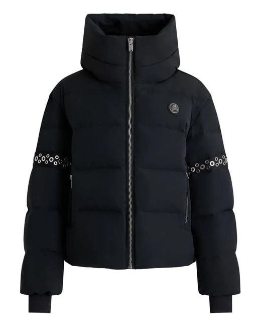 Nero decorazione con occhielli applicazione con logo chiusura con zip design trapuntato cappuccio Size: 34. Gender: Female. Material:poliammide/poliuretano/elastam/poliestere/elastam. Colore: nero