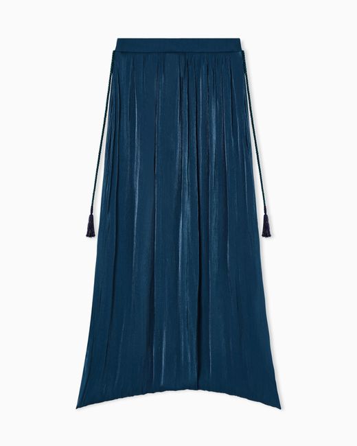 Linee fluide per questa gonna lunga realizzata in tessuto plissé dal finish luminoso che dona un effetto shiny al capo. Il suo design essenziale è movimentato dalla plissettatura e dal cordino in vita con nappine finali. Una proposta versatile, perfetta per diversi look. Colore: blu