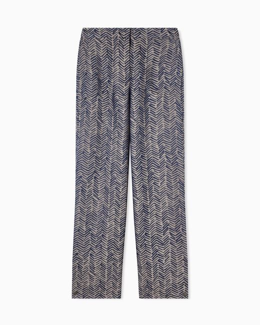 Pantaloni realizzati in viscosa ed impreziositi da un fitto motivo chevron all over che dona carattere al capo. Il modello, con cinturino elastico sul retro, chiusura con bottone e zip, due tasche laterali e fondo gamba regolabile tramite bottone automatico, si presta a numerosi abbinamenti con giacche e maglie di collezione, per look dallo stile disinvolto e rilassato. Il modello è parte della selezione New Normal, una proposta che reinterpreta i look d'archivio della maison in chiave contemporanea. Capi dalle forme fluide e dal gusto androgino, che vestono la silhouette femminile con eleganza, per look day-to-night. In questa stagione è declinata in una palette naturale dalla semplicità sofisticata e autentica. Colore: grigio
