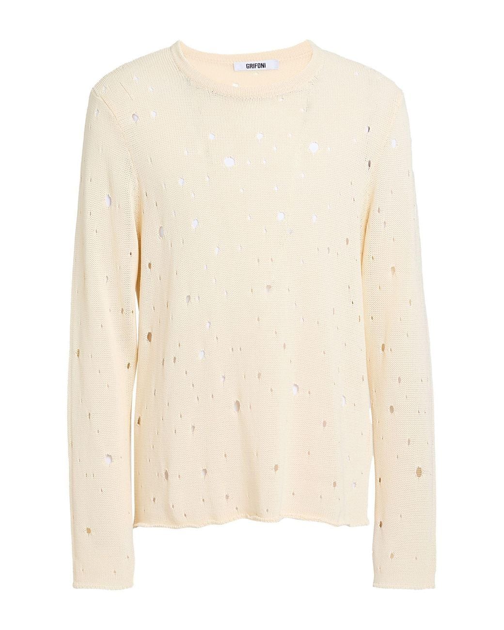 GRIFONI. lavorato a maglia, effetto consumato, maglia media, senza applicazioni, tinta unita, collo tondo, maniche lunghe, senza tasche. 72% Cotone, 28% Poliammide.