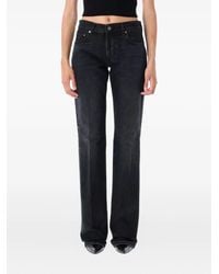 Vai su FARFETCHNero, denim, applicazione posteriore con logo, chiusura con bottone e zip nascosta, design classico a cinque tasche, passanti, vita media, taglio svasato e orlo dritto. Collaboriamo con Good On You, un'agenzia indipendente che