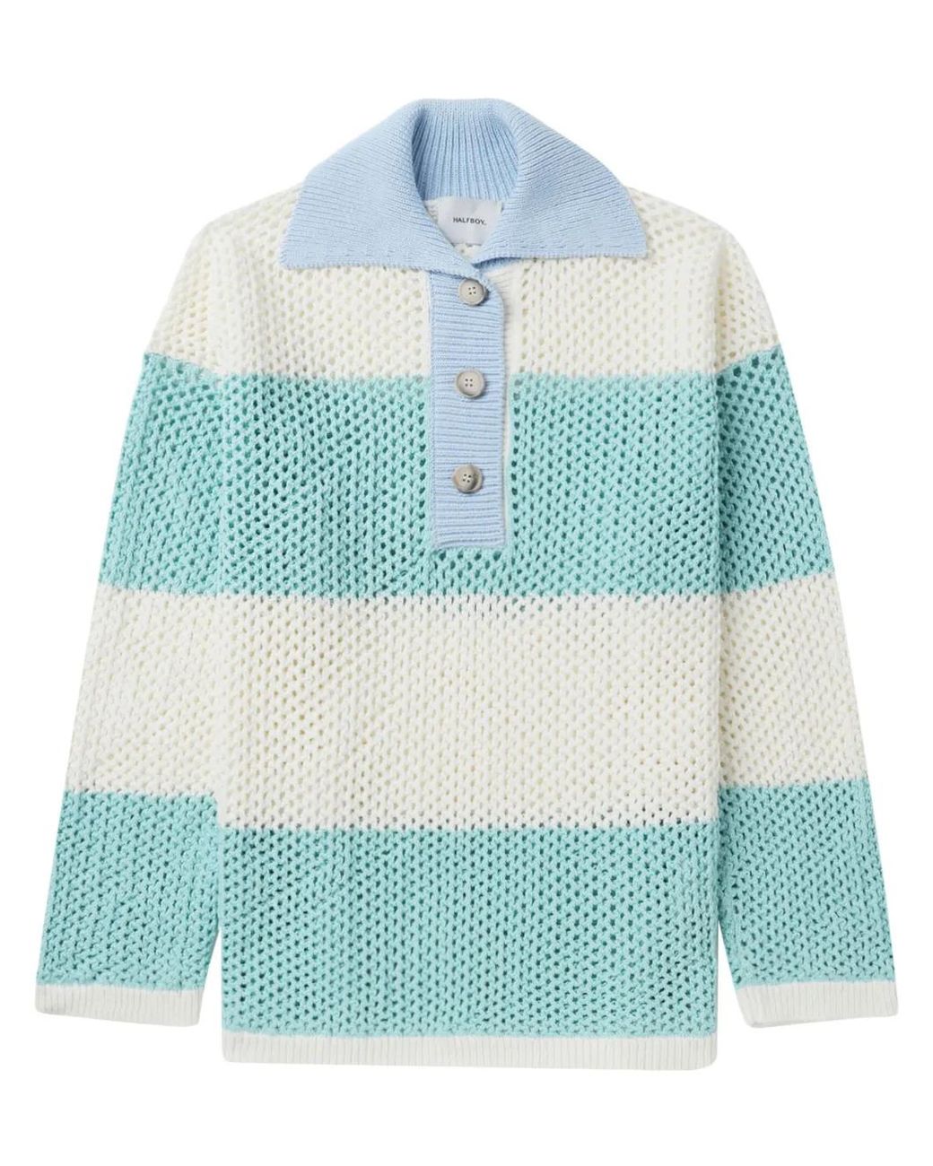 Multicolore, cotone, motivo a righe orizzontali, colletto stile polo, abbottonatura frontale corta, polsini a coste e orlo dritto. Size: S. Gender: Female. Material:cotone. Colore: blu