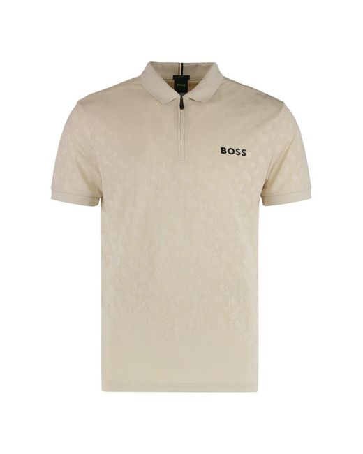Polo a maniche corte in color beige, realizzata in un tessuto morbido e leggero per garantire comfort durante la giornata. Presenta un colletto classico con apertura a zip e il logo del brand stampato sul lato sinistro del petto. La vestibilità è regolare, adatta per look casual o più sofisticati. Ideale per abbinamenti con jeans o pantaloni di tutti i giorni. 100% Poliestere Colore: neutro