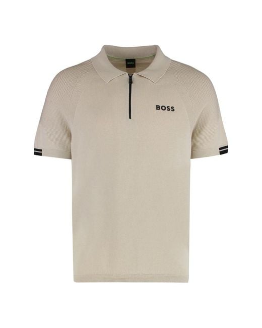 La polo Hugo Boss K Perform Max offre ventilazione mappata sul corpo e un sistema di gestione dell'umidità per un comfort dinamico durante il golf e l'uso attivo. Caratteristiche principali: Beige | Lyocell | Sistema di gestione dell'umidità | Ventilazione traspirante mappata sul corpo | Pannelli traforati per una migliore circolazione dell'aria | Chiusura a mezza zip | Inserti ascellari traforati | Colletto classico | Maniche corte con motivo testurizzato | Logo a contrasto sul petto | Dimensioni e vestibilità: Vestibilità slim | Composizione e cura: 50% Lyocell | 50% Cotone | Fare riferimento alle istruzioni del produttore Colore: neutro