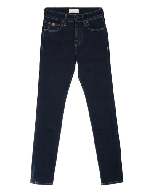 Blu scuro cinque tasche cuciture tono su tono passanti taglio skinny Size: 26. Gender: Female. Material:tessuto. Colore: blu