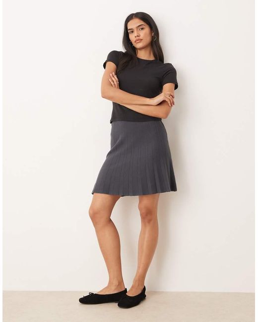 Minigonna A Pieghe Scuro A Quadri - Neutro