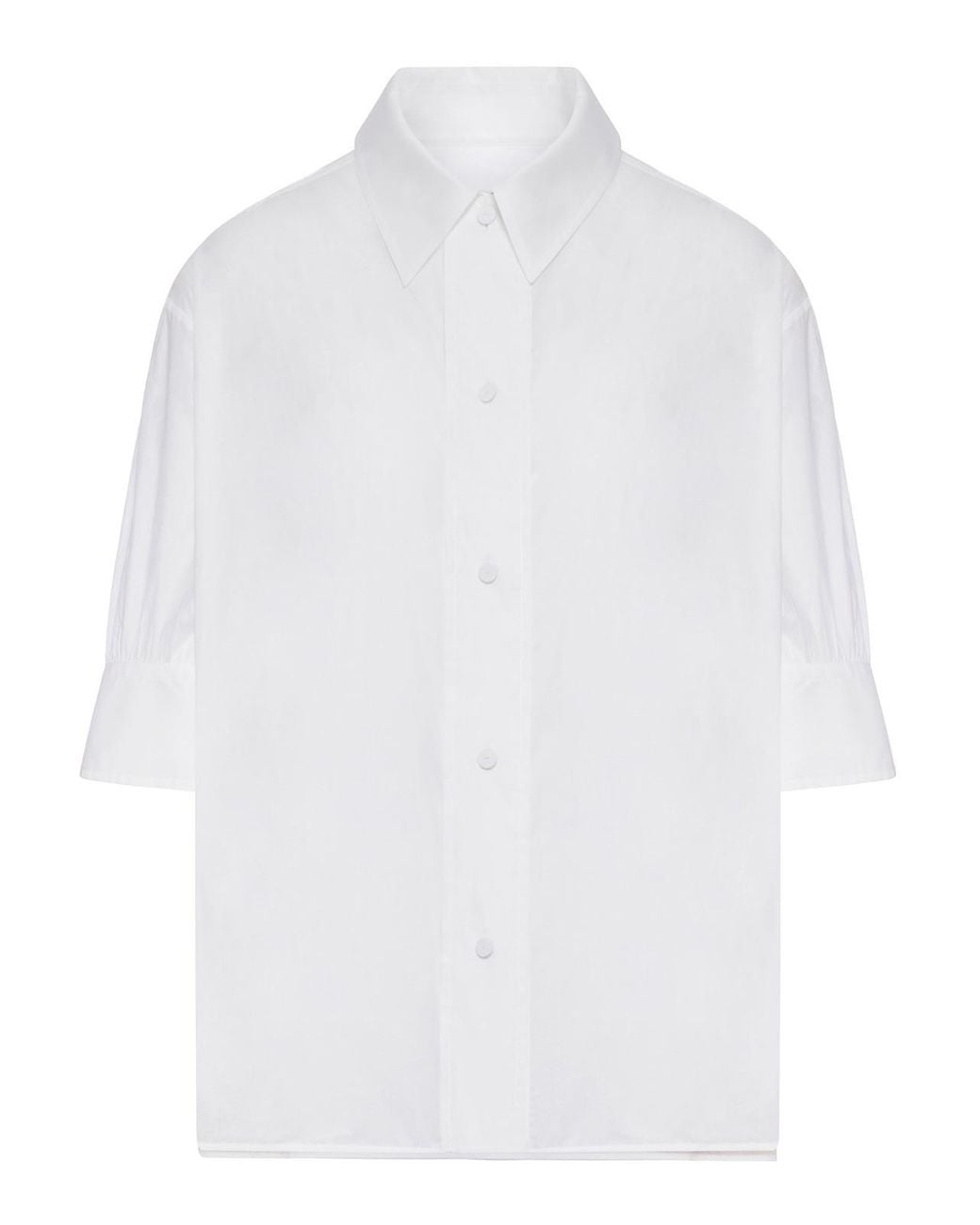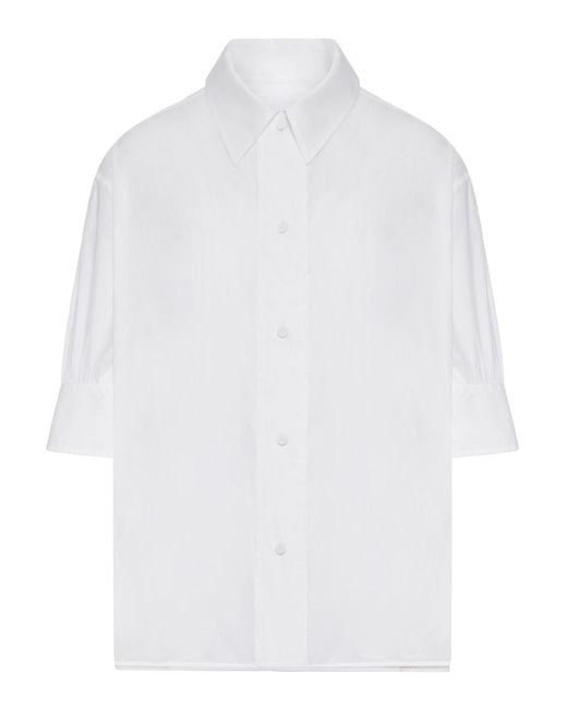 Colletto classico strutturato, chiusura frontale con bottoni tono su tono, maniche corte ampie, spalla leggermente scesa, fondo dritto, canotta interna removibile, design semitrasparente, vestibilità over e dritta, vestibilità comoda, 100% cotone, colore bianco Colore: bianco