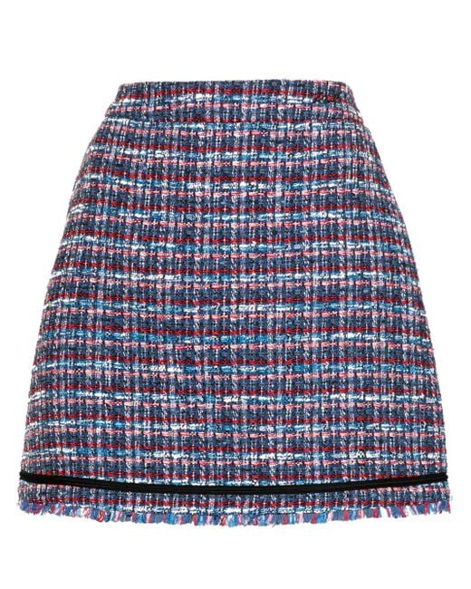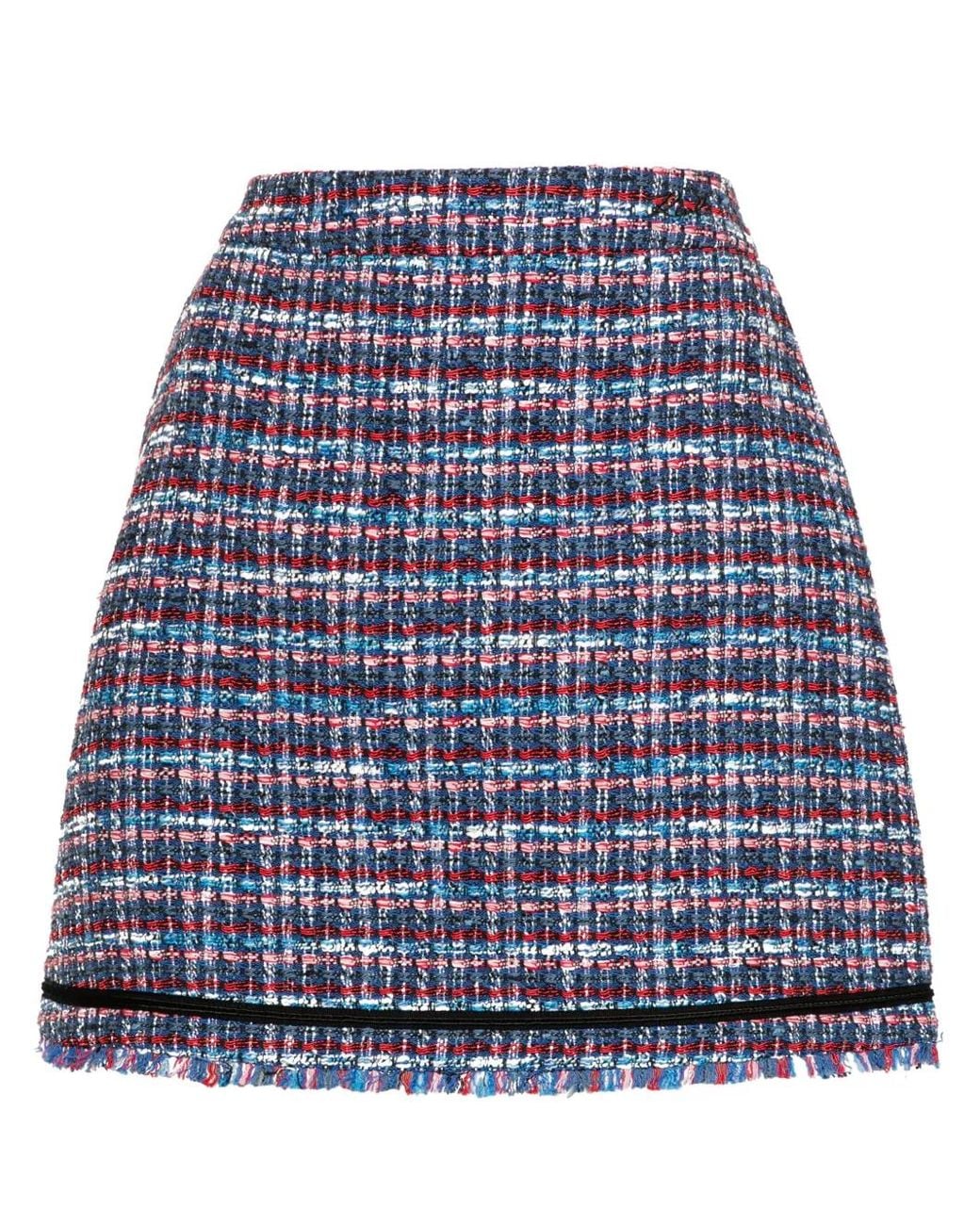 Rosso/bianco/blu misto cotone costruzione bouclé design svasato due tasche laterali orlo sfrangiato lunghezza sopra il ginocchio fodera in raso chiusura posteriore con zip nascosta Size: 40. Gender: Female. Material:poliestere/cotone/acrilico/fibre sintetiche/viscosa/poliammide/poliestere/elastam. Colore: blu