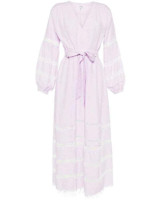 Lilla scuro scollo a V maniche lunghe nodo in vita lunghezza alla caviglia orlo dritto Size: M. Gender: Female. Material:cotone/acrilico. Colore: rosa