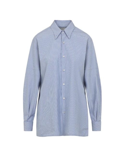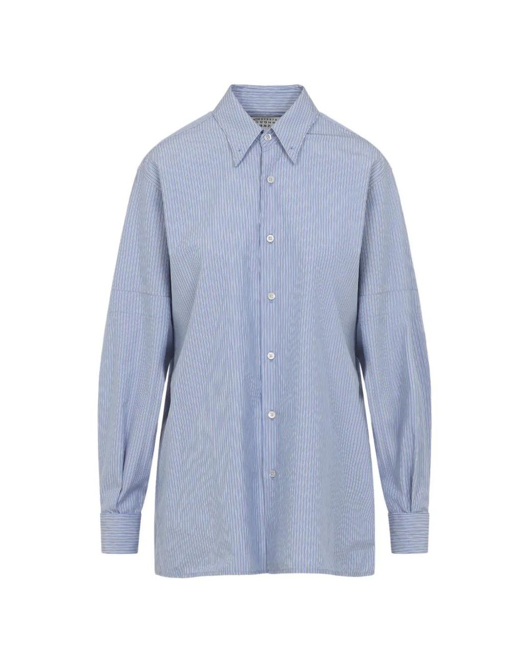 Blu motivo a righe chiusura a bottoni maniche lunghe colletto classico orli con abbottonatura Size: 38. Gender: Female. Material:cotone. Colore: blu