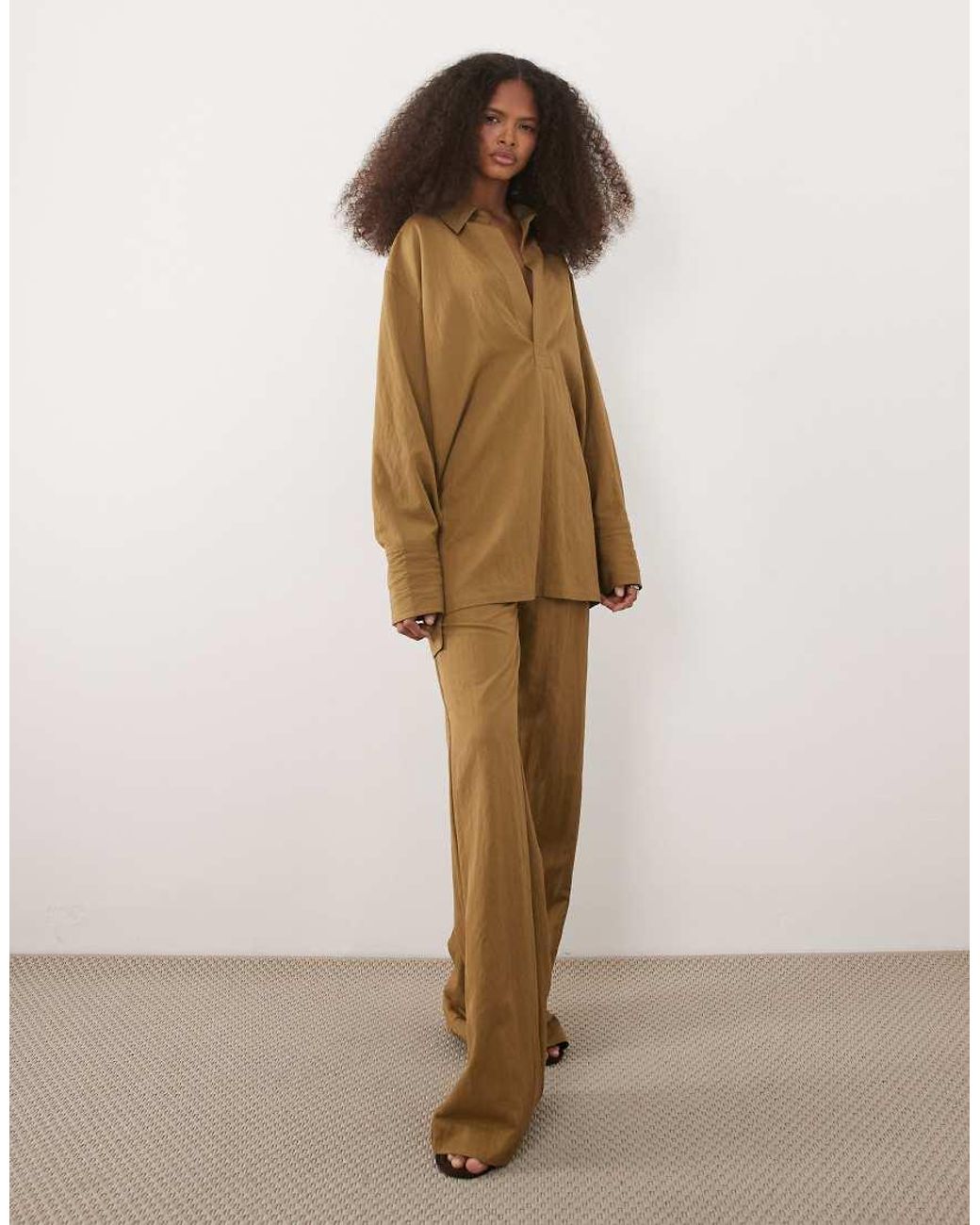 Pantaloni e Leggings di Mango Design tinta unita Fondo ampio Vestibilità comoda Colore: neutro