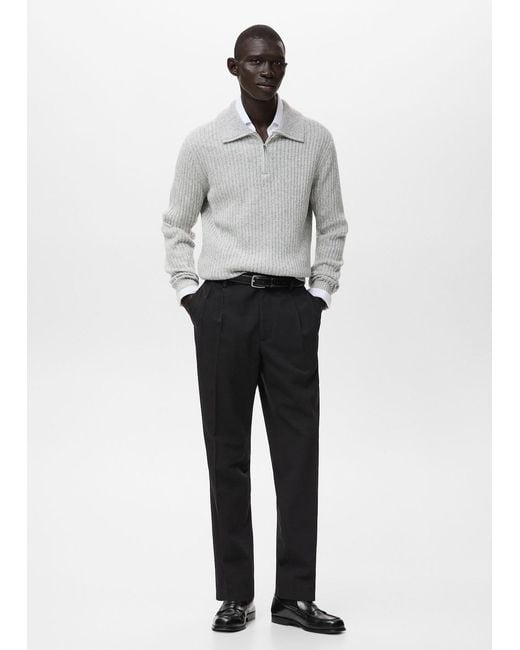 Il colore grigio è un'esclusiva online, Regular fit, Tessuto misto lana, Silhouette dritta, Maglia a coste, Collo alto con chiusura a zip Colore: bianco
