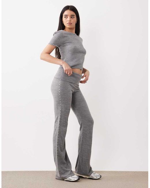 Pantaloni e Leggings di Mango Fascia in vita con risvolto Design con borchie lungo le cuciture laterali Fondo ampio Colore: bianco
