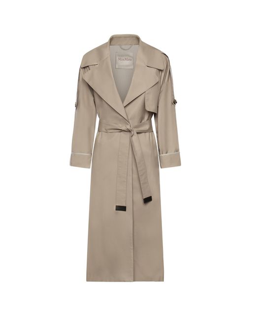 -Realizzato in twill di misto cotone<br>-Collo a rever ampio<br>-Maniche raglan<br>-Cintura in vita tono su tono<br>-La tg mostrata è 40<br>-Made in Italy<br>-Colore: Sabbia