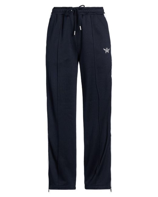 MCM. pantaloni sportivi, felpa francese, tinta unita con applicazioni, bande laterali, logo ricamato, vita alta, comfort fit, chiusura con coulisse, fondo con zip, tasche a fessura, lavare a mano o a secco, non candeggiare, non asciugare in asciugatrice. 56% Poliestere, 44% Cotone. Colore: blu