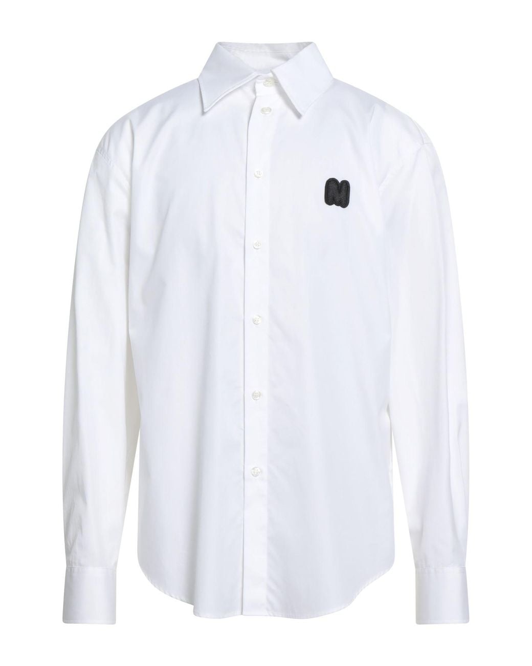 MSGM. camicia regular, tela, tinta unita, logo ricamato, collo classico, maniche lunghe, polsini con bottoni, chiusura con bottoni, lavare a mano, non candeggiare, non asciugare in asciugatrice, questo brand veste grande. 100% Cotone. Colore: bianco