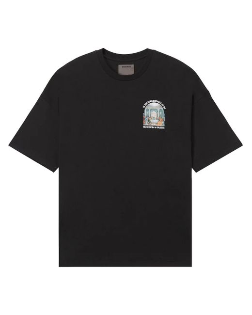 Nero girocollo stampa con logo sul petto maniche corte orlo dritto Size: M. Gender: Male. Material:cotone. Colore: nero