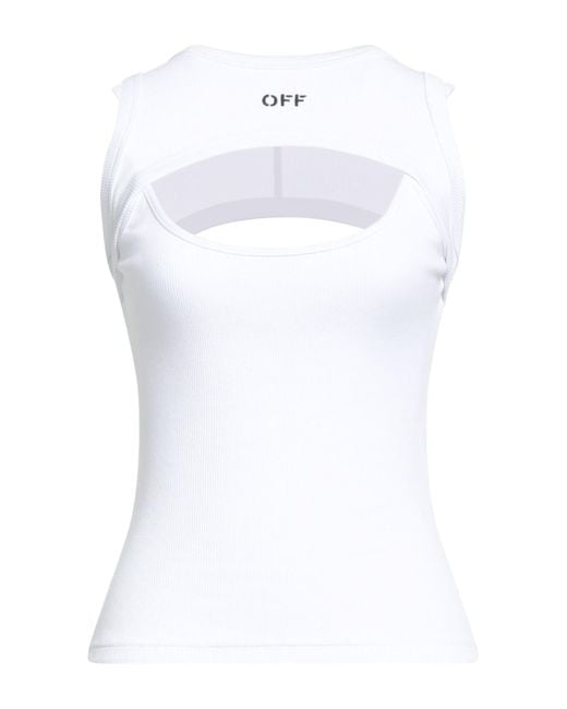 OFF-WHITE™. top, jersey a coste, tessuto elasticizzato, tinta unita, brand logo, intagli, collo tondo, senza maniche, lavare in lavatrice o a secco, non candeggiare, asciugare in asciugatrice. 98% Cotone, 2% Elastan. Colore: bianco
