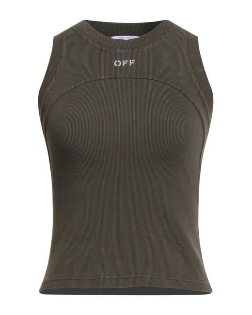 OFF-WHITE™. top, jersey a coste, tessuto elasticizzato, tinta unita, logo ricamato, collo tondo, senza maniche, lavare in lavatrice, non candeggiare, non asciugare in asciugatrice. 95% Cotone, 5% Elastan. Colore: verde