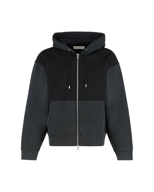 Felpa con zip e cappuccio in cotone da uomo di colore nero
