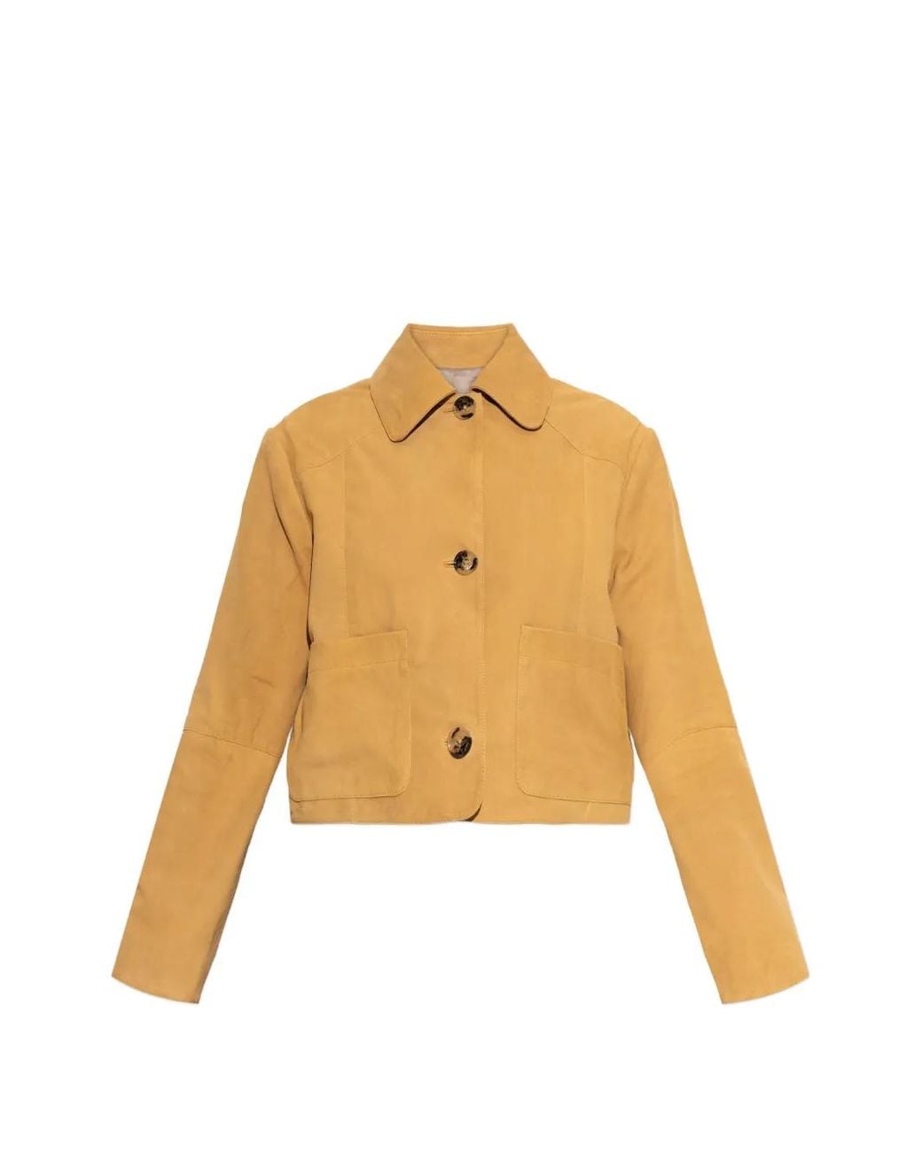 Giallo design con abbottonatura tasche applicate design a inserti design crop Size: 38. Gender: Female. Material:pelle scamosciata di capra. Colore: metallizzato