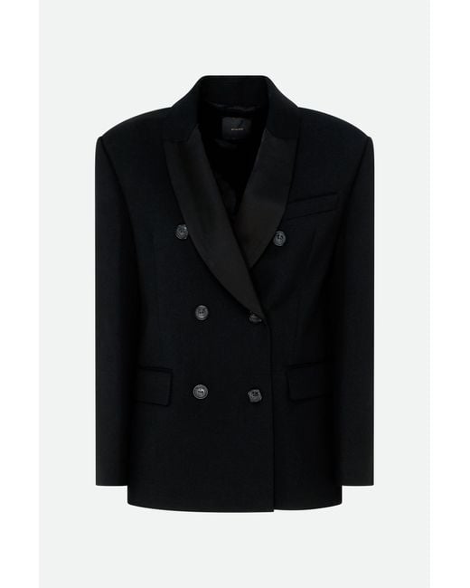 <p>Giacca Doppiopetto in Twill di Lana Nera di Pinko, vestibilità regolare, bottoni logati in tinta, tasche a filetto con patta davanti, logo interno.</p><p>Composizione<br>54% Poliestere<br>44% Lana<br>2% Lana</p> Colore: nero