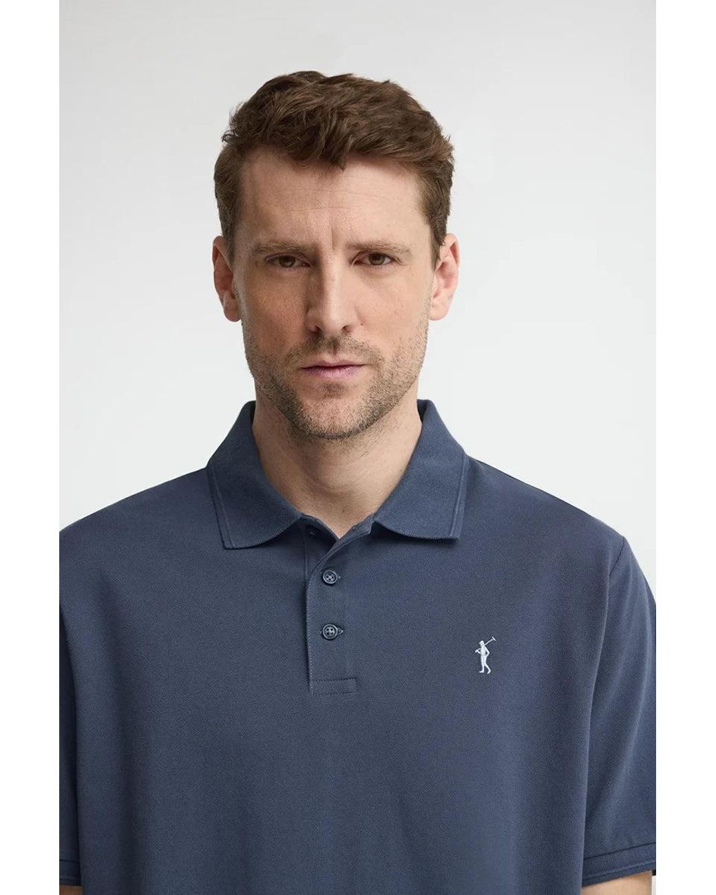 Polo Blu Denim A Maniche Corte Con Logo Ricamato Rigby Go da uomo