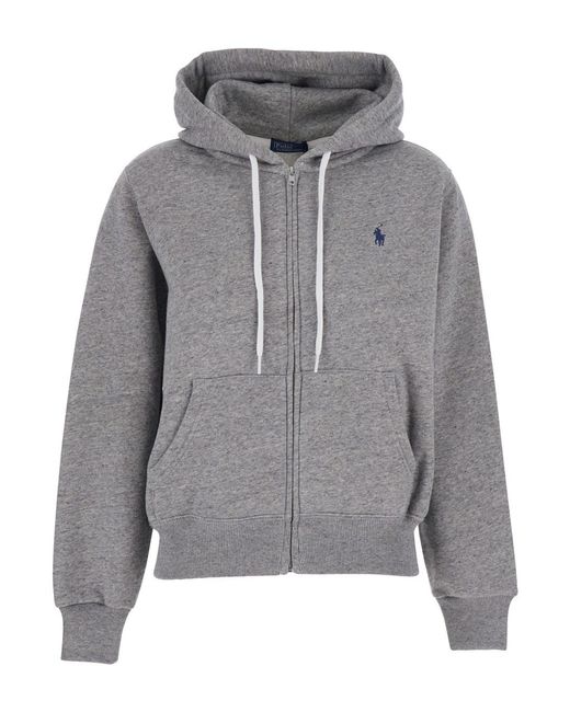 Felpa Con Cappuccio Con Coulisse E Ricamo Cavallino da donna di colore grigio