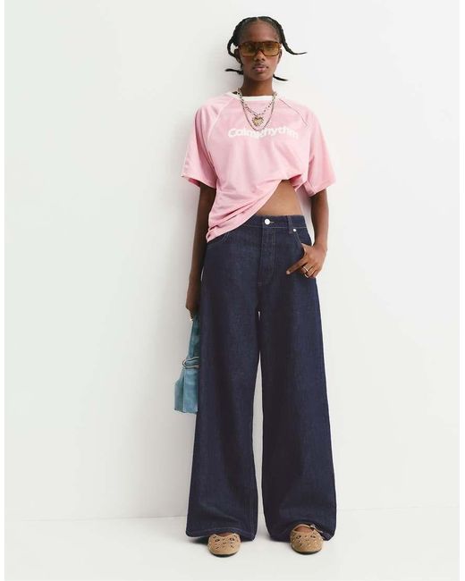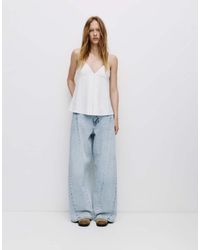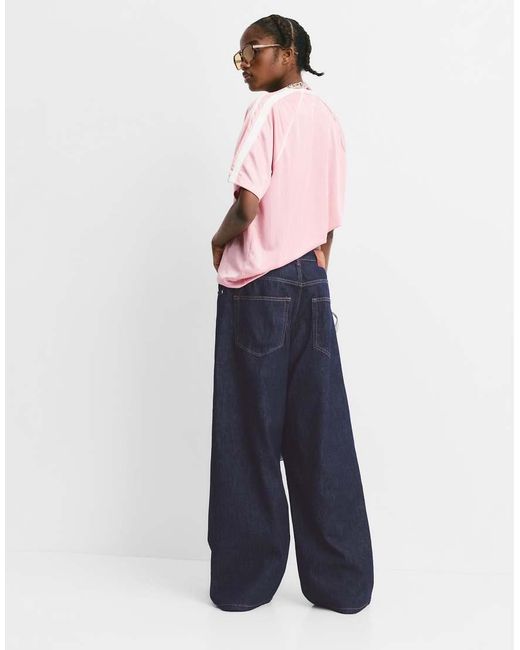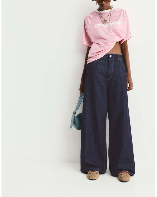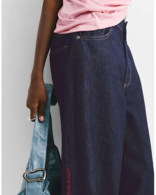 Jeans di Pull&Bear Vestibilità ampia e dritta Vita medio alta Passanti per la cintura Chiusura con patta Pratiche tasche Dettaglio ricamato Toppa applicata sul retro Colore: blu