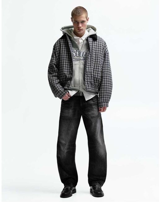 Jeans Ampi A Vita Bassa Nero Sbiadito da uomo