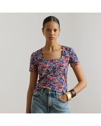 Ralph Lauren Top in jersey con stampa foglie di palma da donna di colore blu