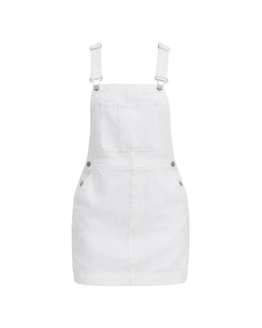Bianco spalline regolabili taschino sul petto tasche laterali dettagli color argento aderente in vita Size: S. Gender: Female. Material:tessuto. Colore: bianco