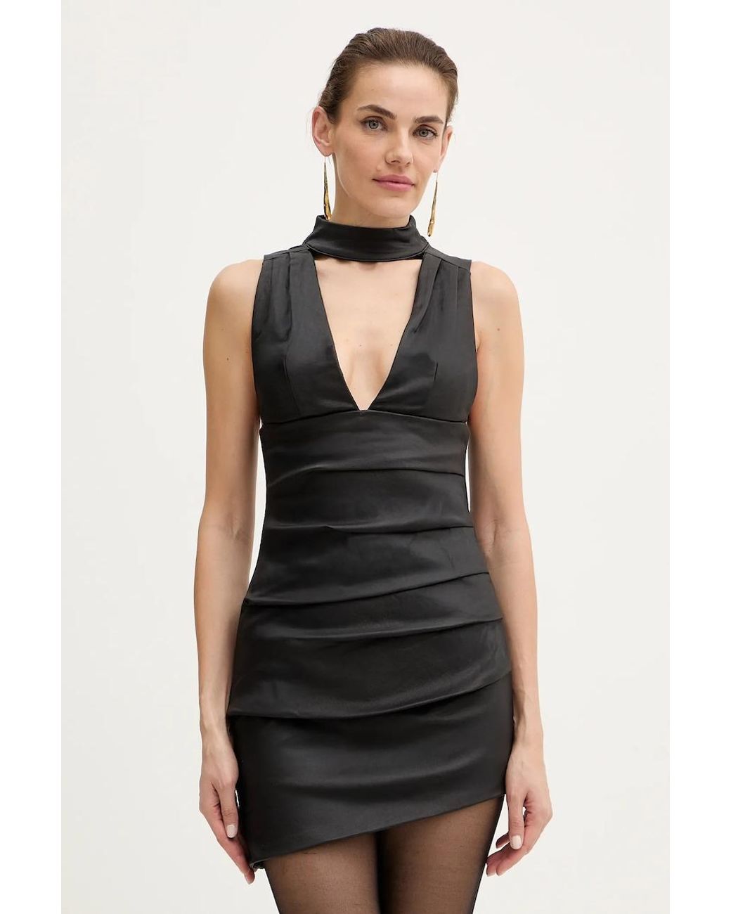 Attenzione: la taglia indicata sul sito web è quella europea. Vi informiamo che le taglie riportate sulle etichette si differenziano a causa del fattore di conversione applicato. - Stile aderente con pieghe di grande effetto. - Chiusura a zip sul retro. - Foderato. - Tessuto elasticizzato fine. - Lunghezza: 72/82 cm. - Larghezza sotto l'ascella: 34 cm. - Larghezza della vita: 34 cm. - Larghezza dei fianchi: 44 cm. - Misure per la taglia: S. Colore: nero