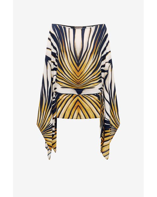 Stampa Ray of Gold Realizzato in viscosa leggera Silhouette morbida da caftano Maniche ampie e fluide Dettaglio cintura regolabile in vita Scollo a barca Ideale per il resort wear o come copricostume chic Abbinalo a sandali minimalisti e occhiali da sole Made in Italy Colore: bianco