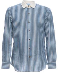 Vai su MiintoEleva il tuo stile casual con la camicia da lavoro Salvatore Piccolo Heritage a righe blu/bianche. Questa camicia sartoriale italiana unisce il fascino dell'abbigliamento da lavoro con la raffinatezza napoletana, presentando un colletto
