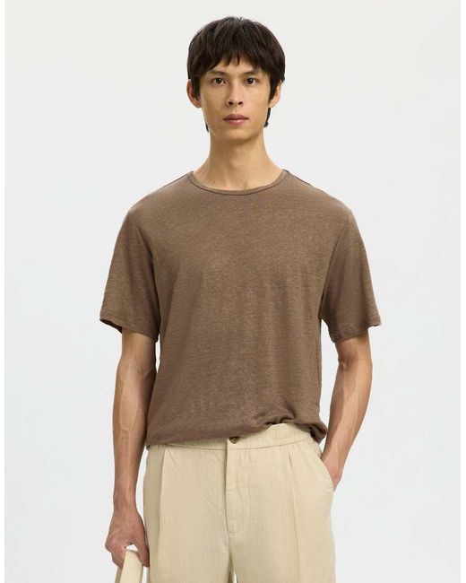Camicie di Selected Design tinta unita Girocollo Maniche corte Regular fit Colore: marrone