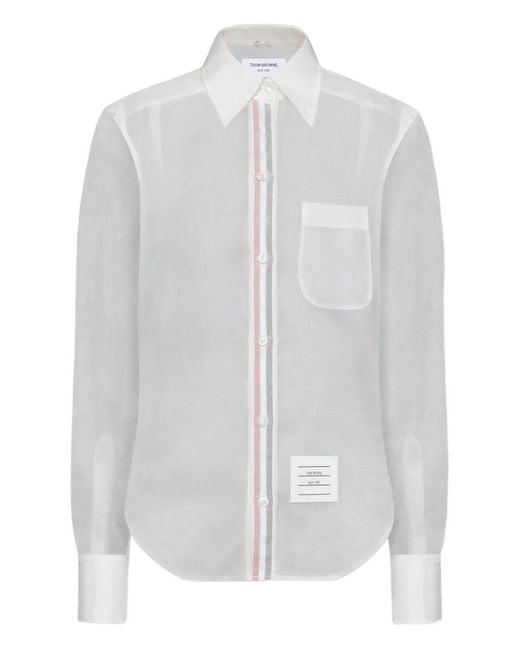 Bianco seta organza taschino sul petto chiusura a bottoni dettagli a righe orli con abbottonatura Size: 40. Gender: Female. Material:organza. Colore: bianco