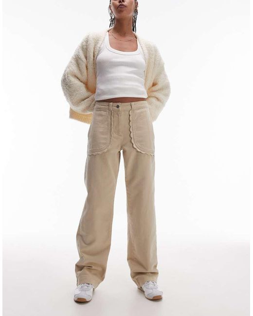 Pantaloni e leggings di Topshop Perfetto stile Topshop Vita bassa Passanti per la cintura Chiusura con patta Pratiche tasche Bordi smerlati Taglio dritto Colore: neutro