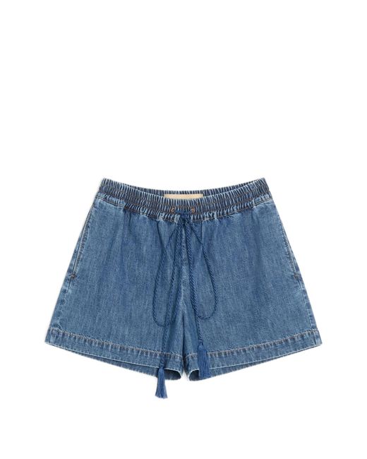 I Shorts Denim di designer sono l'ideale per la Primavera Estate 2026. Realizzati in denim blu, offrono un taglio moderno e versatile. Dettagli ben rifiniti e un design essenziale li rendono perfetti per ogni occasione. Scoprili ora e aggiungili al tuo guardaroba! Colore: blu