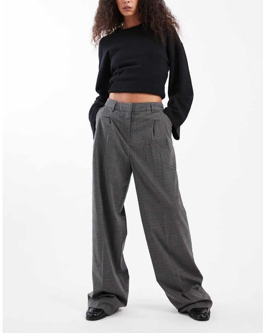 Pantaloni Dad Con Fondo Ampio Mélange A Quadri da donna di colore nero