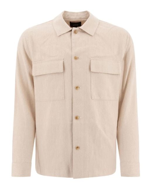 Beige motivo a spina di pesce bottoni frontali maniche lunghe tasche sul petto polsini con abbottonatura Size: S. Gender: Male. Material:lino/cotone. Colore: neutro