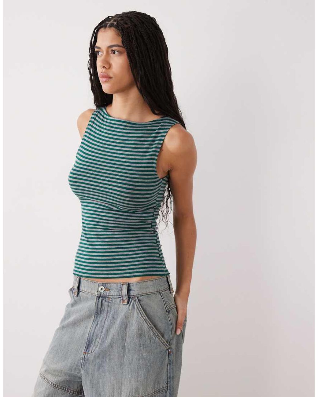 Top di Weekday Scollo a barchetta Senza maniche Motivo a righe Slim fit Colore: blu