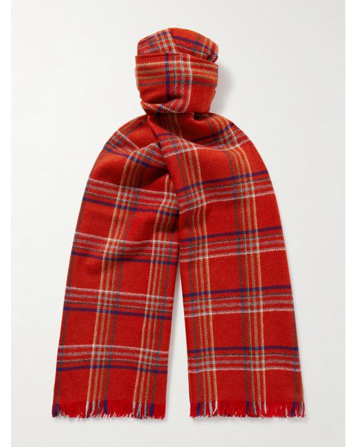 Gable Checked Fringed Wool Scarf da uomo di colore rosso