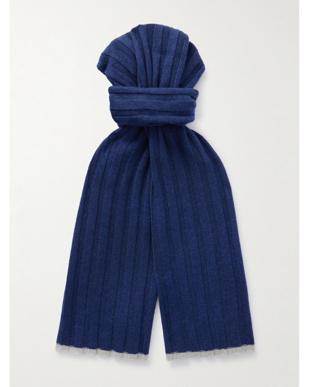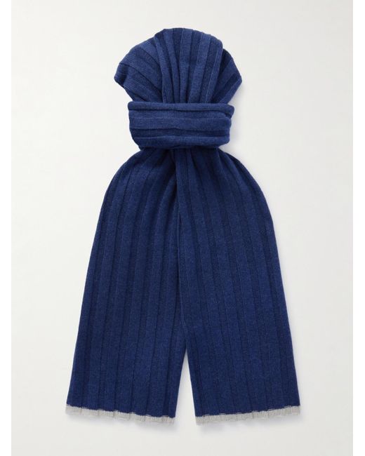 Ribbed Cashmere Scarf da uomo di colore blu