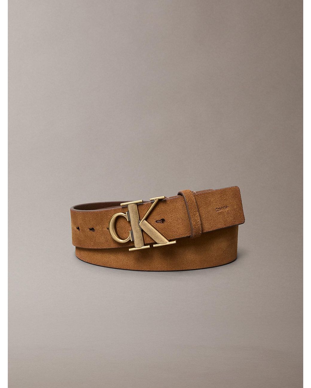 Realizzata in Italia in morbida pelle scamosciata, questa cintura unisce una lavorazione artigianale senza tempo a un design moderno. Rifinito con il logo distintivo Calvin Klein per un look raffinato ed elegante.<br><br>Highlight<br><br>• morbido camoscio premium<br>• fibbia in ottone antico<br>• prodotto in Europa<br>• fibbia con monogramma Calvin Klein<br><br>Forma e vestibilità<br><br>• larghezza: 4 cm<br>• taglie ampliate: 85 cm-135 cm<br><br>Composizione e cura<br><br>100% pelle<br><br>paese d'origine: Italia Colore: multicolore