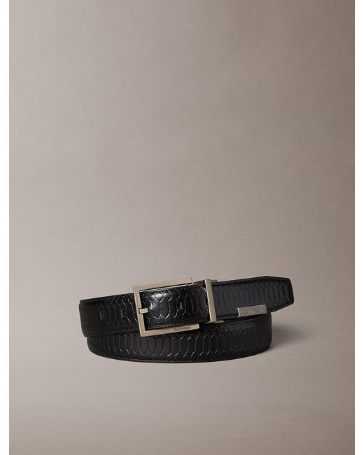 Realizzata per garantire la massima versatilità, questa cintura double-face in pelle è dotata di fibbia girevole e cinturino reversibile, per offrire due finiture distinte che si adattano al tuo look.<br><br>Puoi personalizzare la lunghezza di questa cintura rimuovendo la fibbia con un cacciavite e tagliando la cinghia di pelle alla misura desiderata.<br><br>Highlight<br><br>• pelle pieno fiore<br>• fibbia quadrata in nichel spazzolato<br>• double-face: liscia o pitonata<br>• logo goffrato Calvin Klein sulla placca<br><br>Forma e vestibilità<br><br>• lunghezza regolabile<br>• larghezza: 3,2 cm<br>• taglie ampliate: 85 cm-135 cm<br><br>Composizione e cura<br><br>100% pelle<br><br>paese d'origine: Cina Colore: multicolore