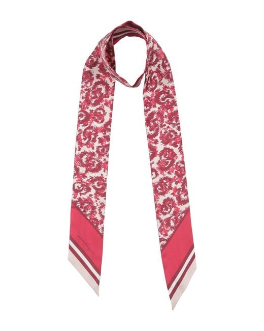FERRAGAMO. sciarpa, raso, a righe, brand logo. 100% Seta. Colore: rosso